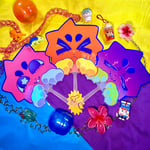 at the bottom of every handle is attatched a ball chain with a color matching the picked rar's color scheme~!